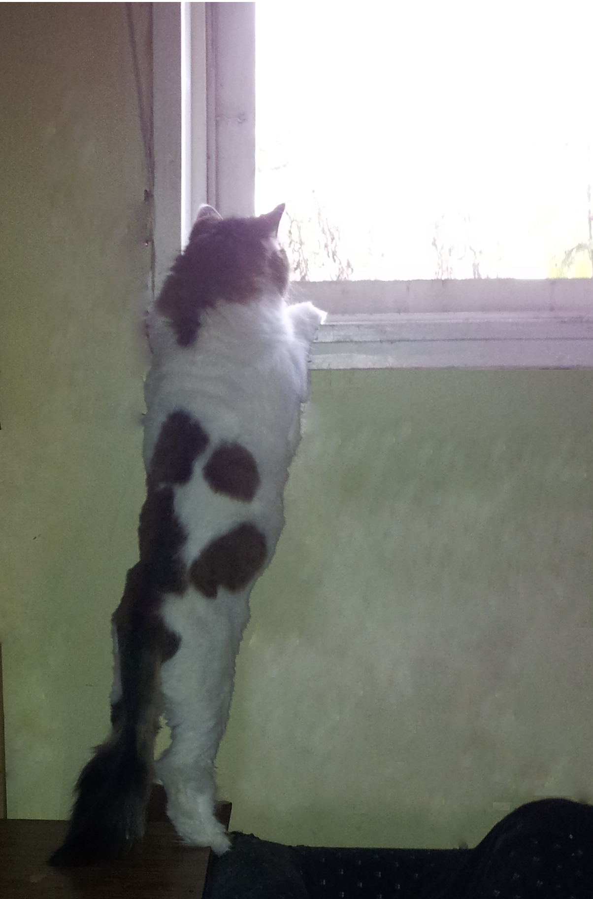 In December of 2022 Buster visited his veterinarian for a health check following the sudden loss of his step-sister, Queenie to an aggressive lung cancer. My main concern was to be certain that Buster didn't have the same condition brewing in his lungs and his vision seemed to be decreasing in his good eye. Full blood work and viral testing was done. His blood work was good and revealed no indication of liver disease. His STMA was slighty above the maximum level, 17 over by 3 points of 14, indicating a stage 1 or 2 kidney disease, certainly a good stage for control of any further kidney damage. The one surprise that was revealed was that Buster was FIV positive. He had never been viral tested while he was with his lady, nor while he was at the Seaway Mall adoption centre. But, as he did have a history of outdoor privileges and had come home with a few deep injuries on a few occasions, the FIV diagnosis was not entirely a shock. He was FelV negative. Buster's lymphocytes were normal as were the globulins so there was then no active infections. Having experience in caring for FIV felines and knowing that Buster had been indoor-only since he arrived here, I had no misgivings that he should be able to continue to live a healthy and full live, here.